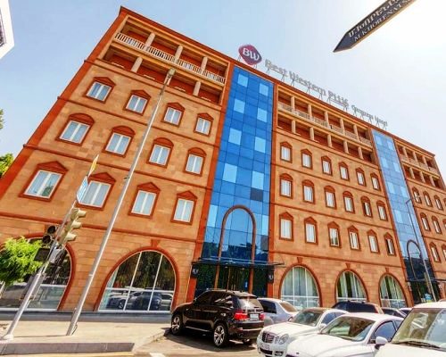 В Ереване хоть и 295 солнечных дней в году, но всё же здесь случаются туманные и холодные зимы. Зато весной город просто расцветает, нет жары и солнечно, но стоит быть готовым к сильным ветрам. Летом же сухо и жарко, воздух прогревается до 40 ℃. Таким образом, пожалуй самое комфортное время для туризма в Ереване с марта по май и с августа по ноябрь. В центре Еревана богатый выбор отелей на любую цену, от раскошного Marriot Hotel на Площади Республики до более скромного Good Hotel на проспекте Саят-Новы. Но остановившись в любом выбранном Вами из вариантов Вы отлично впишитесь в культурную жизнь центра города. Если же центр покажется Вам дорогим удовольствием, присмотритесь к району северней Каскада, спускаясь по которому, можно наблюдать за городом и любоваться видом Арарата. |